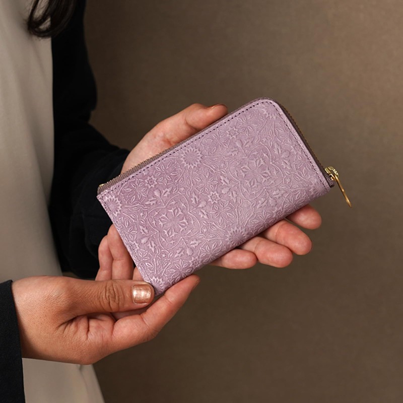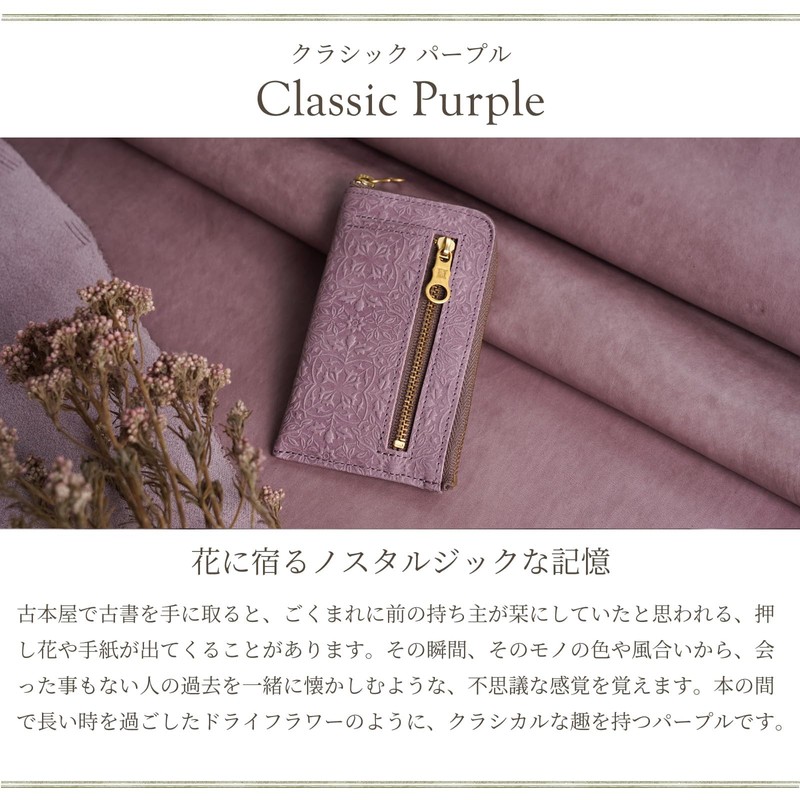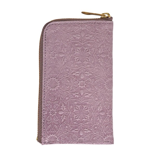 HIRAMEKI. Morris L-Shaped Zipper Key Case, Cowhide Leather, Embossed William Morris Art Design, classic purple, Elegant