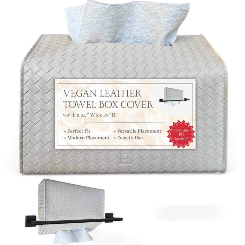 - Durable Material & Ideal Fit – Made from thick, textured leather for a sophisticated look, this hand towel holder measures 9.4" L x 3.5" W x 6.75" H—designed for Kleenex disposable paper hand towels. Not compatible with pop-up or cube boxes. Available in classic white to suit various décors.