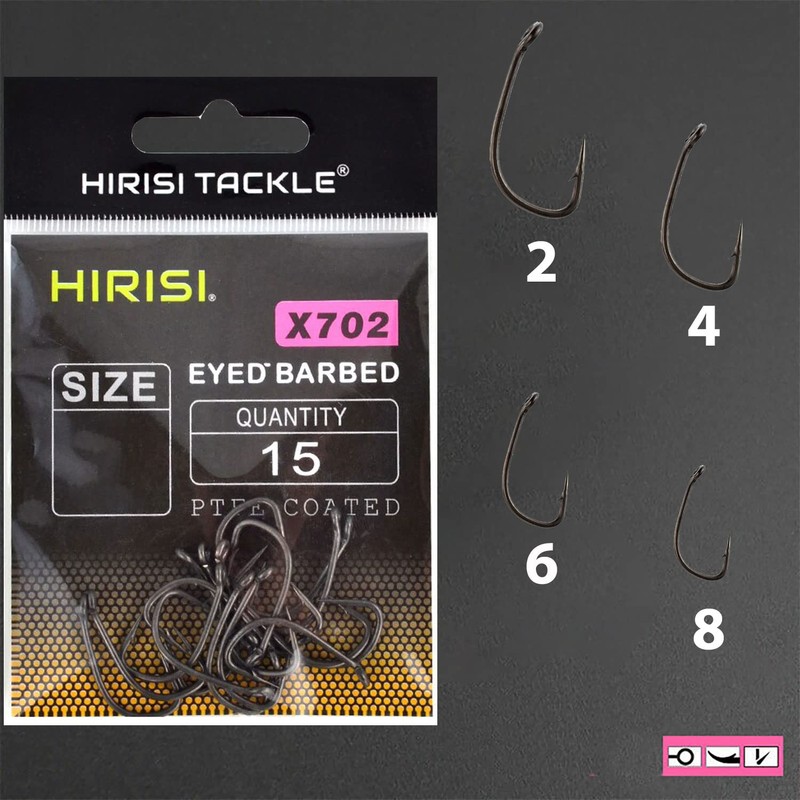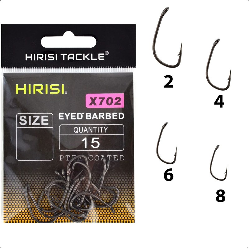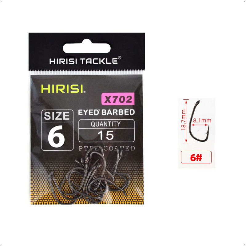 Hirisi X702 Fishing Hooks Size 6 with Barbed Hooks Carp Hook with Eyelet for Carp Fishing, Carbon Steel, Boilie Hooks, Seated Fishing, Various Sizes, Pack of 15