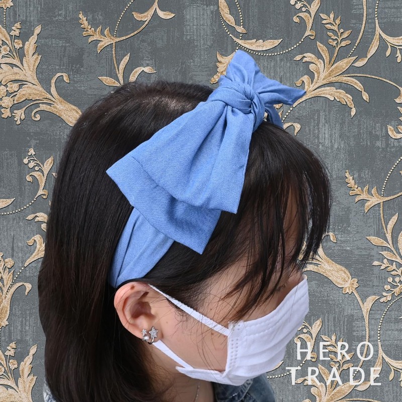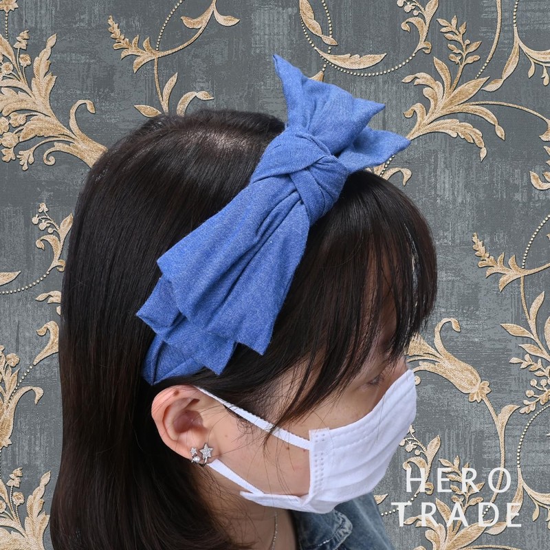 - Fashionable denim headband that can be used by children and adults with a large bow tie