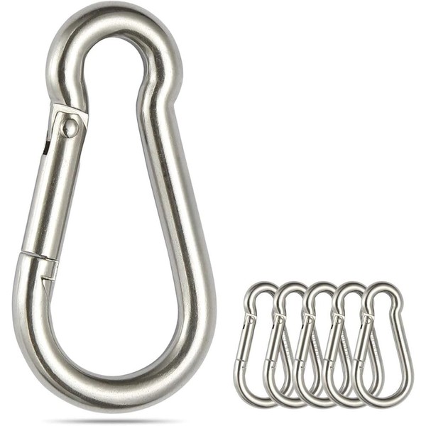 Hirola Set de 6 Mosquetón de Gancho para Senderismo, Gancho de Resorte de Acero Inoxidable 304, Clips Resistentes para Cuerdas, Cadenas y Anclaje, Mosquetón Multiusos para Camping