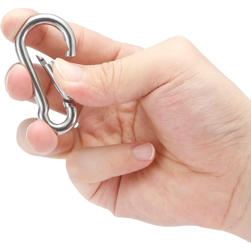 - MATERIAL CALIDAD: El mosquetón está hecho para durar, estos ganchos resisten la corrosión y el desgaste. Su material premium los hace ideales para interiores y exteriores, manteniendo su resistencia y funcionalidad.