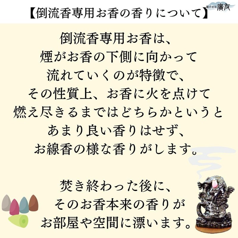- Smoke flows like a gentle stream of river, and relax in a relaxing space. The smoke rises below the hole in the bottom of the incense and slowly flows like a river, allowing you to enjoy both the fragrance and the look. When placed in Fukumyu, the smoke coming from the dragon mouth will accumulate underneath the clouds like a cloud, where lucky smoke is accumulated and purified spot. Burns approximately 10-12 minutes Sandalwood is a scent that relieves tension and calms the mind. Whether you're stressed at work, clean your room or meditation