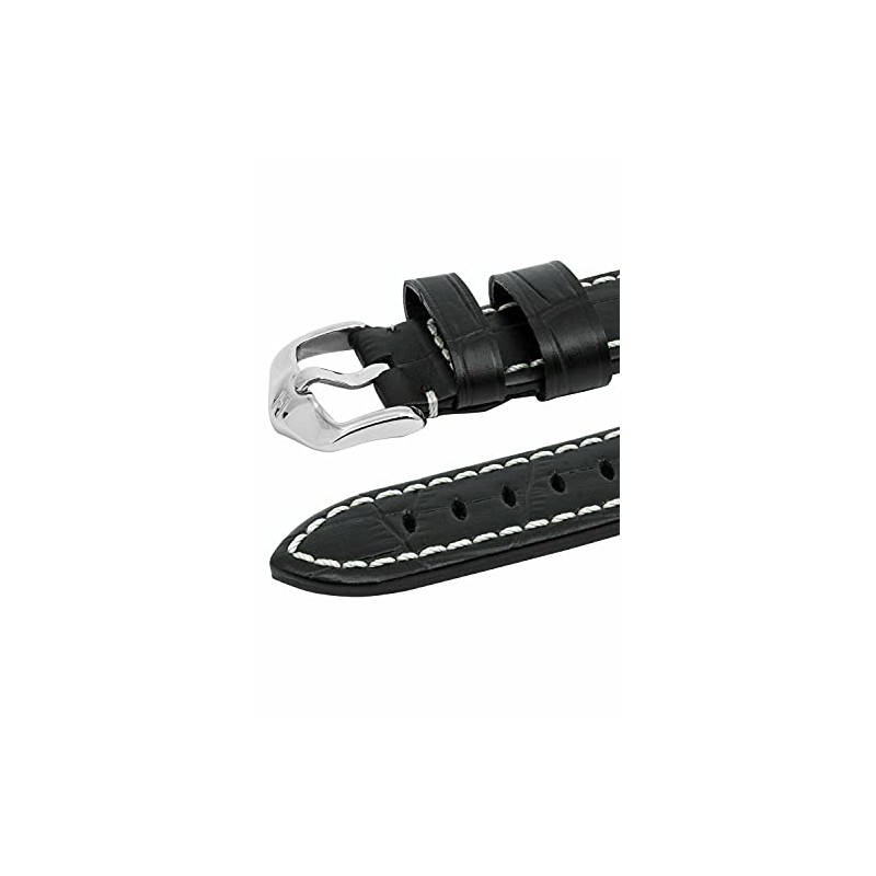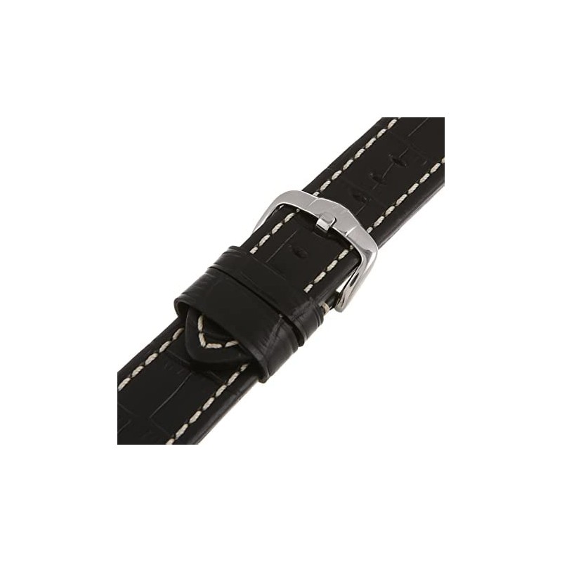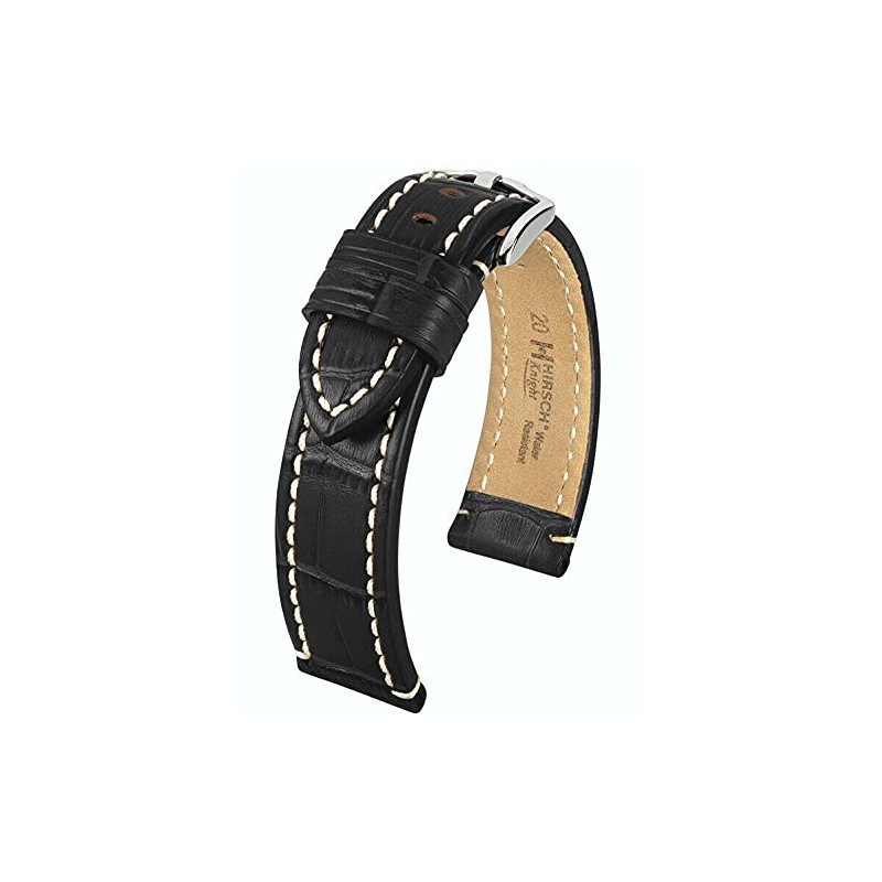 - Hirsch Knight Alligator Embossed Leather Watch Strap (Black) with Stainless Steel Silver colored buckle | Band Length (mm) - Large (120/80) | Attachment Width (mm) - 28mm