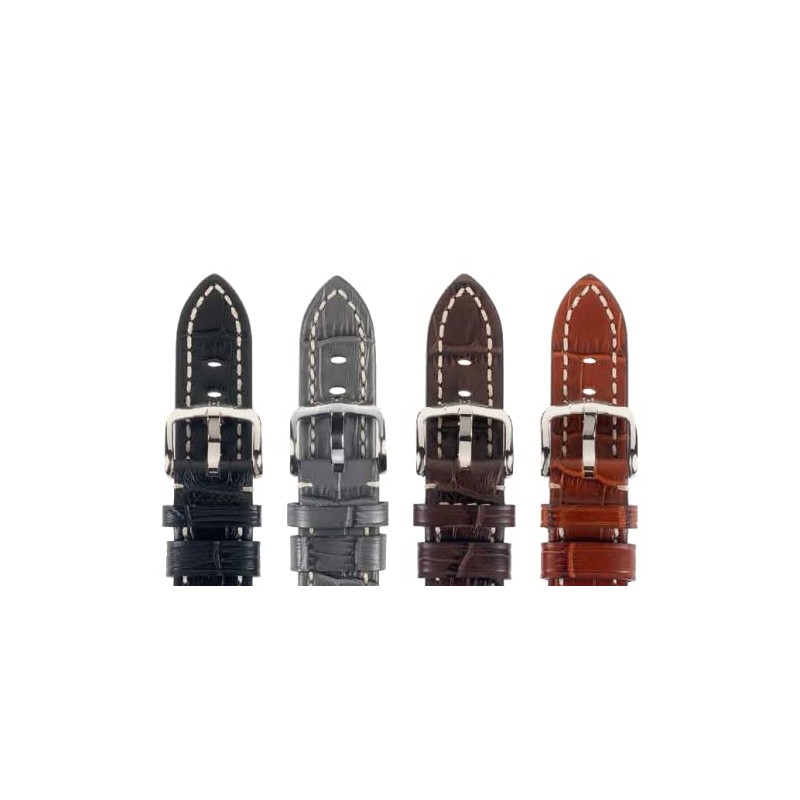 - Powerful men's watch band made from precious calf skin with perfect alligator grain effect - and with that variation of dark and light shades that is normally only found in genuine alligator hide.