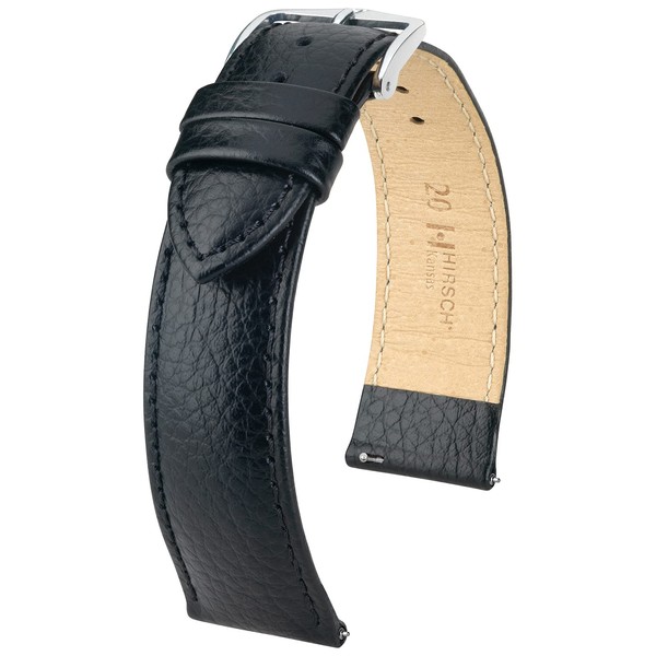 HIRSCH Kansas Watch Strap - Durable Calf Leather Buffalo Embossed Watch Strap - 12 to 24 mm, black, 18 mm, Classic