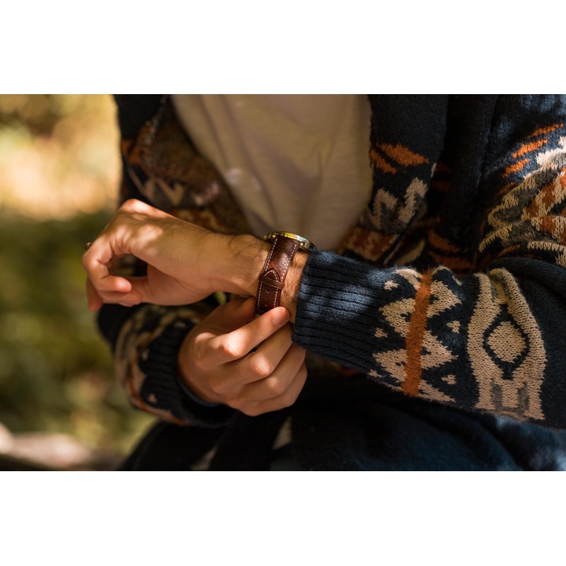 - Thanks to the harmoniously shaped padding, the contrasting stitching and the defined embossing line on the bracelet and clasp, the watch strap fits perfectly for larger chronographs and sporty watches. The band is well suited for people with "normal" wrists.