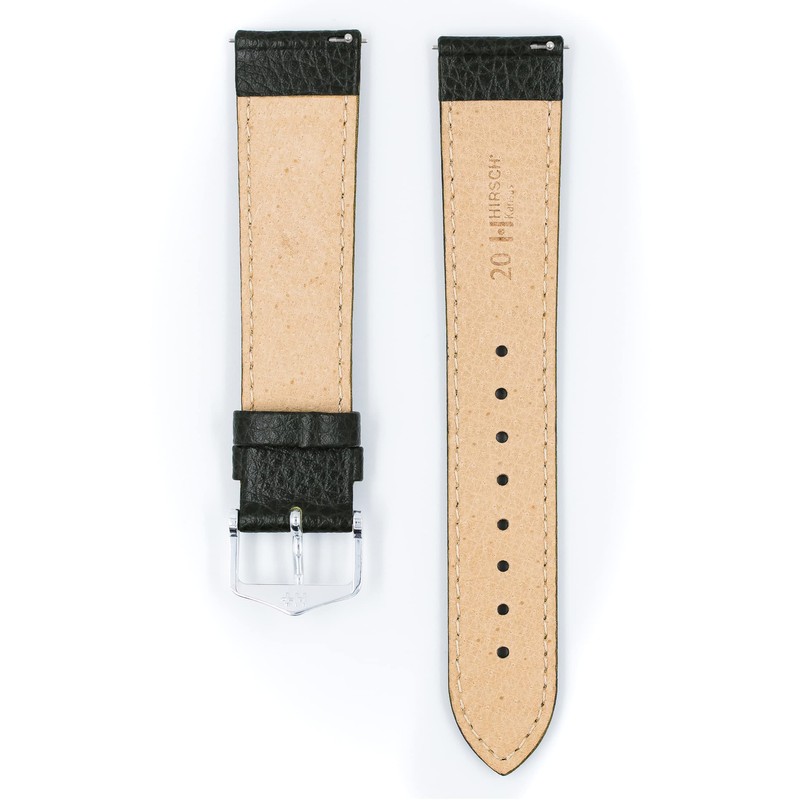 - All HIRSCH watch straps are sauna tested. Even the combination of heat, moisture and sweat cannot harm them - they remain dimensionally stable and comfortable to wear. The strap comes with an attractive, interchangeable HIRSCH Tradition Design spring bar buckle in polished finish made of nickel-free L316 stainless steel and 2 mounted HIRSCH quick-release spring bars.
