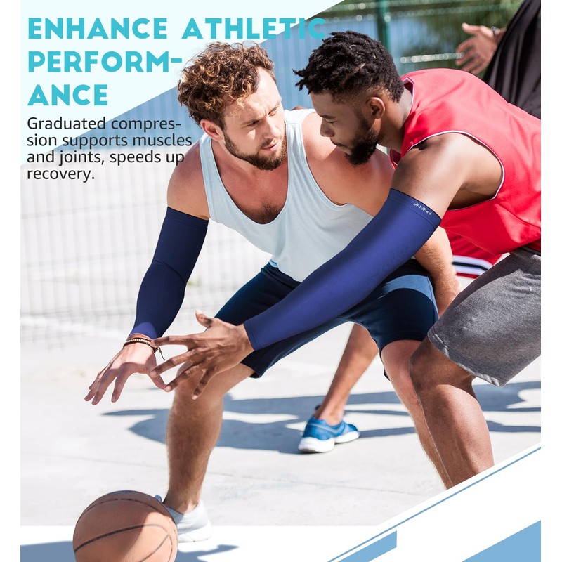 - Tela transpirable de alta calidad: hechas de tela de licra de alta calidad, transpirable y que absorbe la humedad, estas mangas de compresión ofrecen un ajuste cómodo y antideslizante que se siente ligero en tu piel. Perfecto para uso durante todo el día, garantizan la máxima comodidad y flexibilidad, lo que te permite centrarte en tu rendimiento sin distracciones.