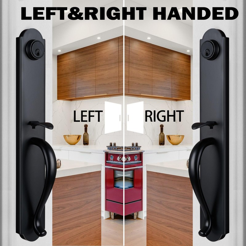 - 【Keyed Entry Door Handle Set】This solid zinc alloy front door handle enhances the security. Including 1 Pack full escutcheon keyed entry door handle set with deadbolt&knob.