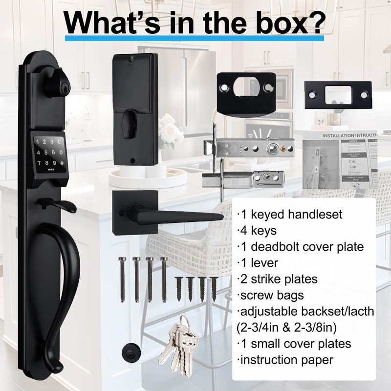 • 【Easy to install】Just need a screwdriver (all door lock hardwares are included, except AA battery)