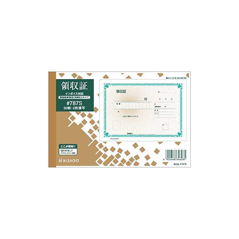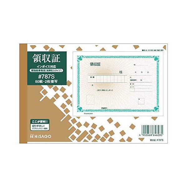 Hisago #787S Receipt B6 Horizontal Tax Rate Listed, 2 Copies, 50 Pairs