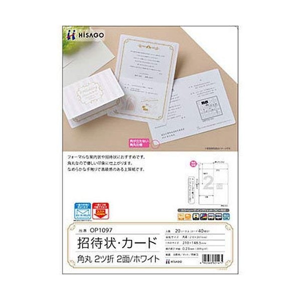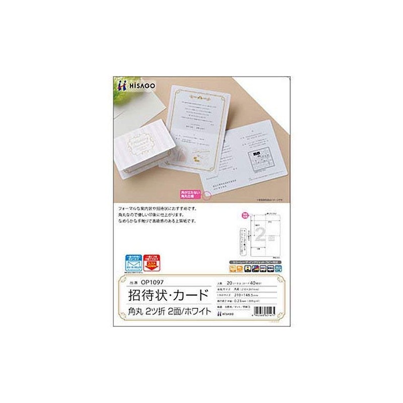 • Hisago OP1097 Invitation Cards, Round Corners, 2 Sides/White, A4 20 Sheets