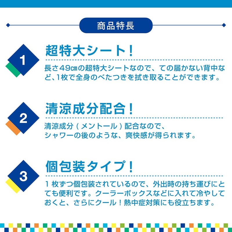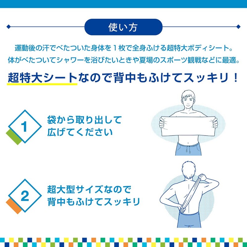 Refresh your sweat after sports. Cool ingredient (menthol) gives you a refreshing feel like after a refreshing shower. Super large 19.3 x 9.8 inches (49 x 25 cm) stick type for easy carrying.
