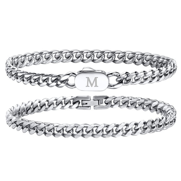 - đă2 Pcs M Initials Bracelet for MenăSet of 2 silver men's initials bracelets for men, these are designed for men. The Cuban stainless steel bracelet for men is a highly popular and meaningful piece of jewelry. You can choose letters to signify your name, favorite initials, parent's names, lover's friend's initials. Wearing an initial bracelet is a classic way to make a statement!