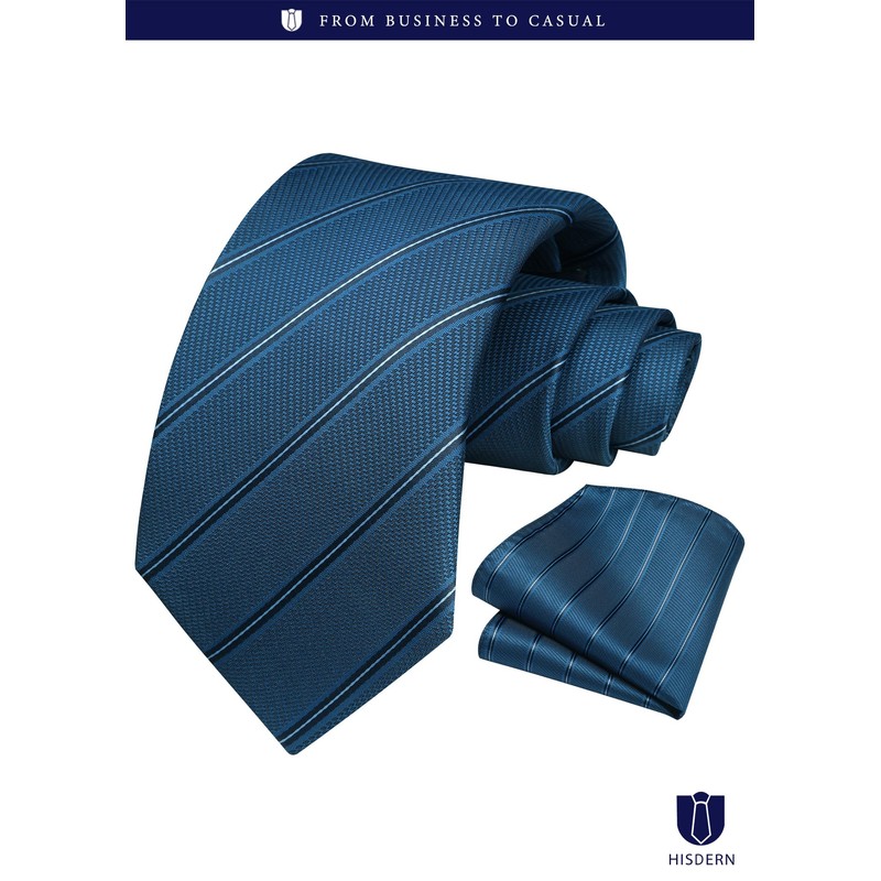 - Package Contents: Necktie: W 3.3 inches (8.5 cm) x Length 59.1 inches (150 cm), Pocket Square: 12.2 x 12.2 inches (31 x 31 cm)Simple packaging case with the Hisdern logo.