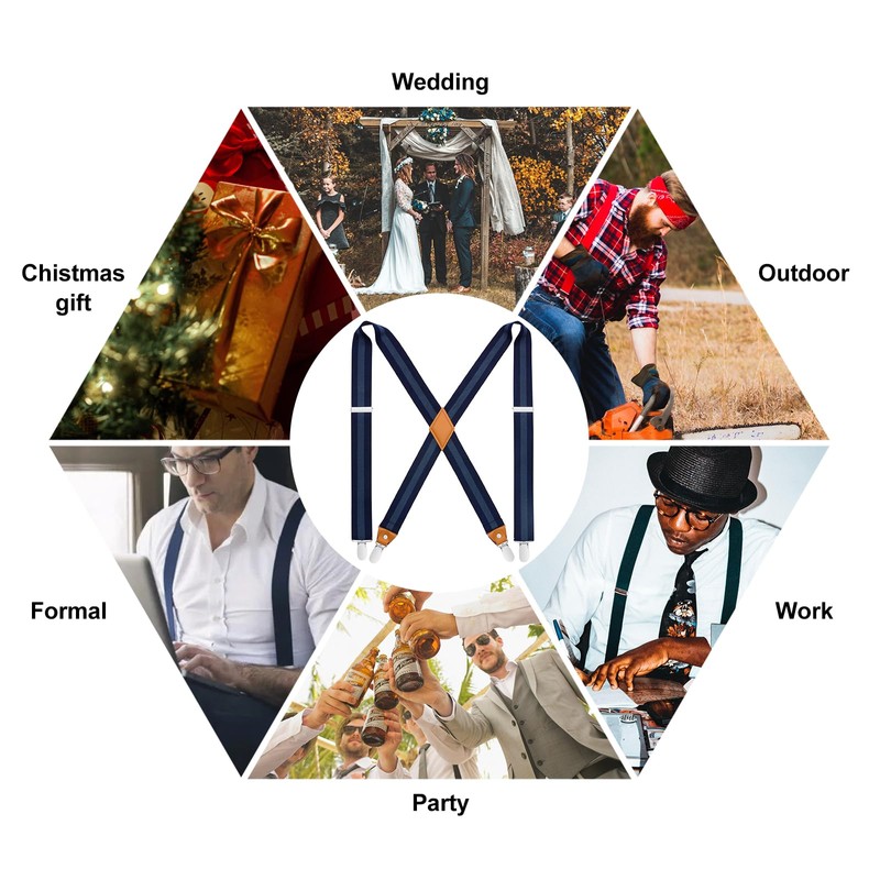 - 4 clips braces ideal for trousers, jeans, suit, shorts. Comes with a pocket square that is a must for the men's wardrobe.