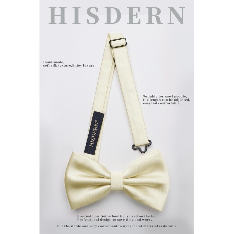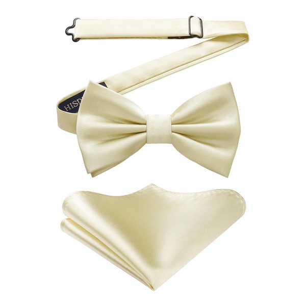 HISDERN Men's Bow Pocket Square Set Plain Pre-Tied Fly Handkerchief for Wedding Party - beige