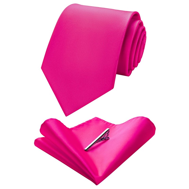 - Classic design: a classic ties for men fuchsia made of excellent fabrics, combined with a pocket square in the same colour and a metal tie clip, adds a touch of elegance and professionalism to your formal attire