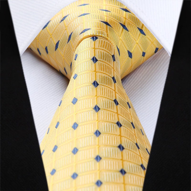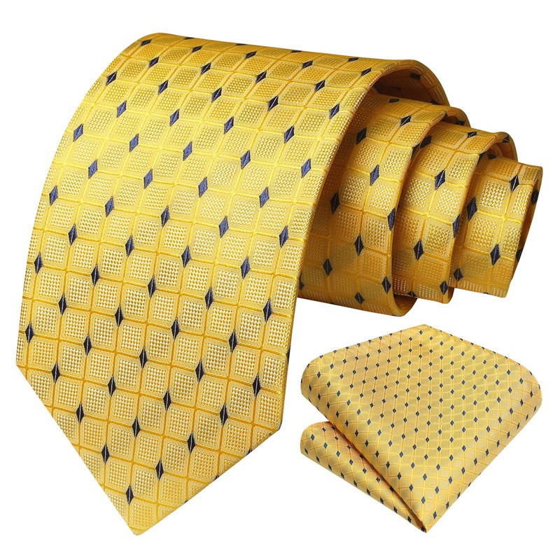 HISDERN Men's Yellow Plaid Tie for Wedding Party Woven Checked Necktie With Pocket Square Set for Prom