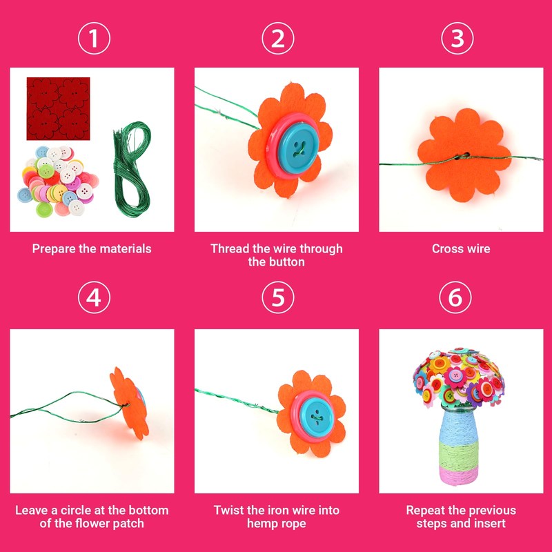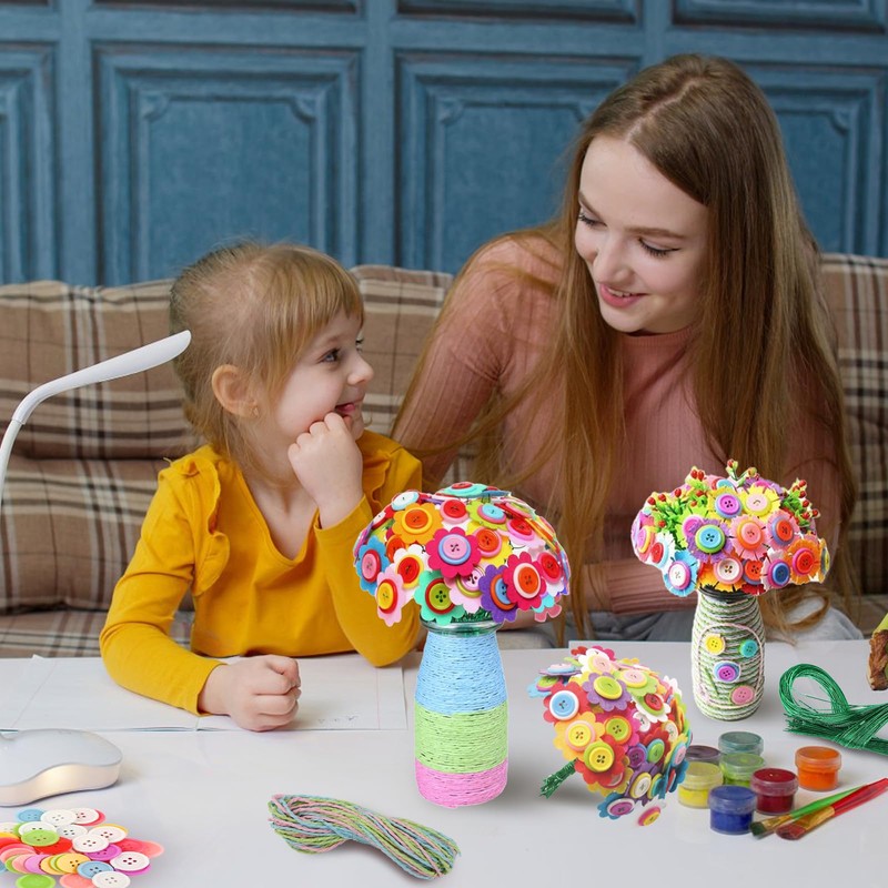 Hisdricus Flower Craft Set for Children, Flowers Crafts Felt Kits with Buttons, with Colourful Buttons - Felt Flowers, Flower Vase - Ideal for Crafts for Fantastic Flowers, Party, Gifts, with Flowers