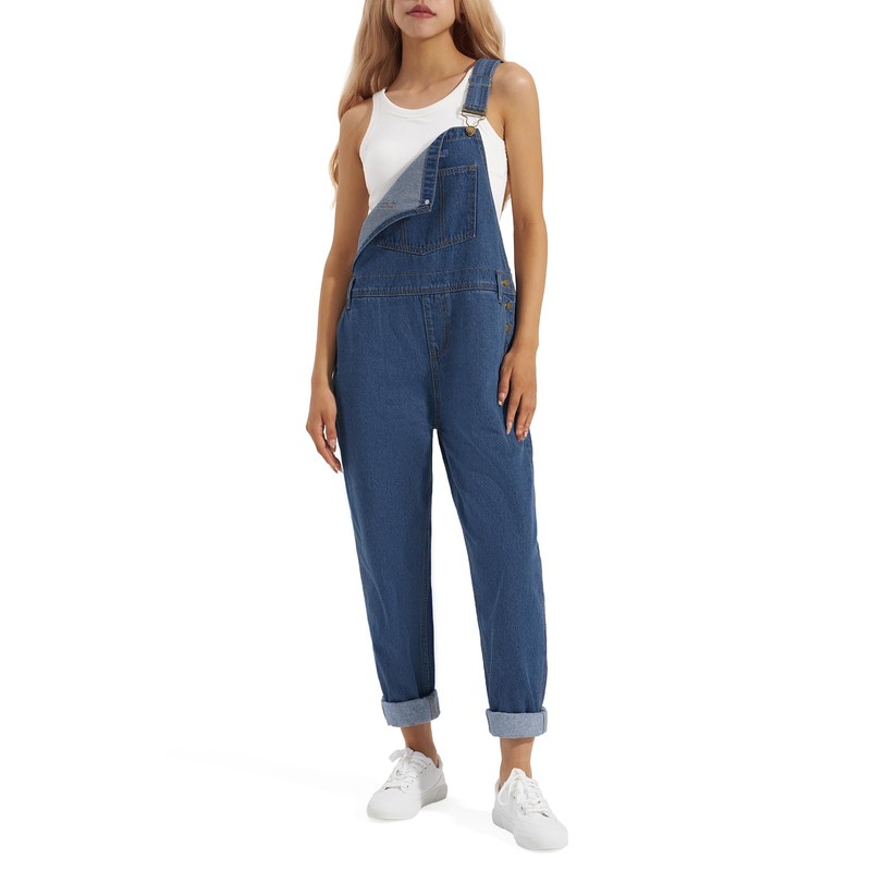 - PRACTICAL FUNCTION: The 5 pockets and side button embellishments add a touch of utility and charm. The women jean overalls include a bib pocket, 2 large front hand-warming pockets, and 2 back patch pockets. Each pocket is reinforced to prevent tearing. Adjustable side buttons at the waist provide additional space, allowing for more waist movement to meet different needs.