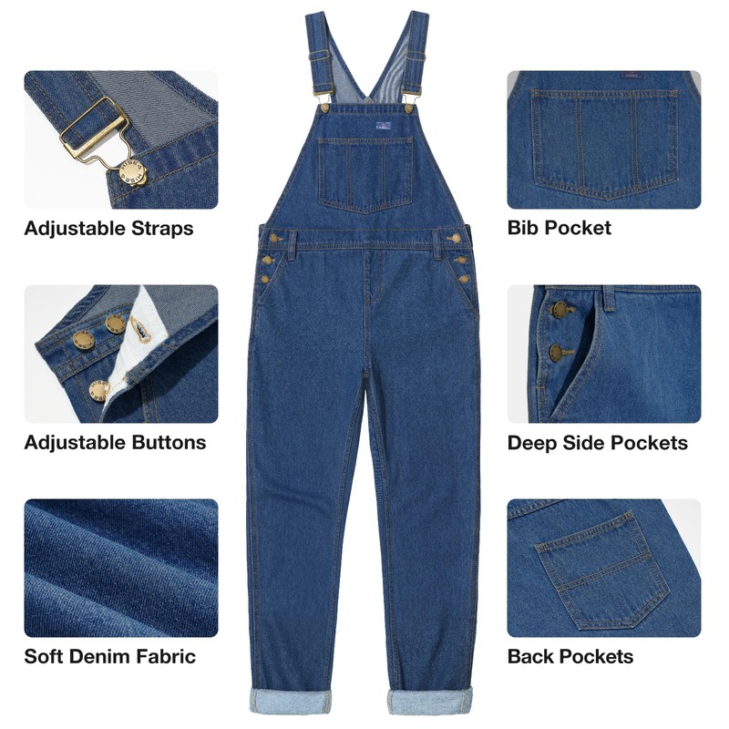 - FABRIC & CRAFTS: These womens bibs overalls are made of 100% cotton twill denim, ensuring durability, breathability and comfort, with excellent wrinkle and tear resistance. The 10.5 oz medium-weight fabric is suitable for all seasons, with special wash and soft treatment processes for a soft hand feel and comfortable wear.