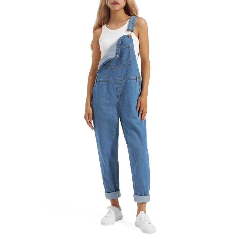 - PRACTICAL FUNCTION: The 5 pockets and side button embellishments add a touch of utility and charm. The women jean overalls include a bib pocket, 2 large front hand-warming pockets, and 2 back patch pockets. Each pocket is reinforced to prevent tearing. Adjustable side buttons at the waist provide additional space, allowing for more waist movement to meet different needs.
