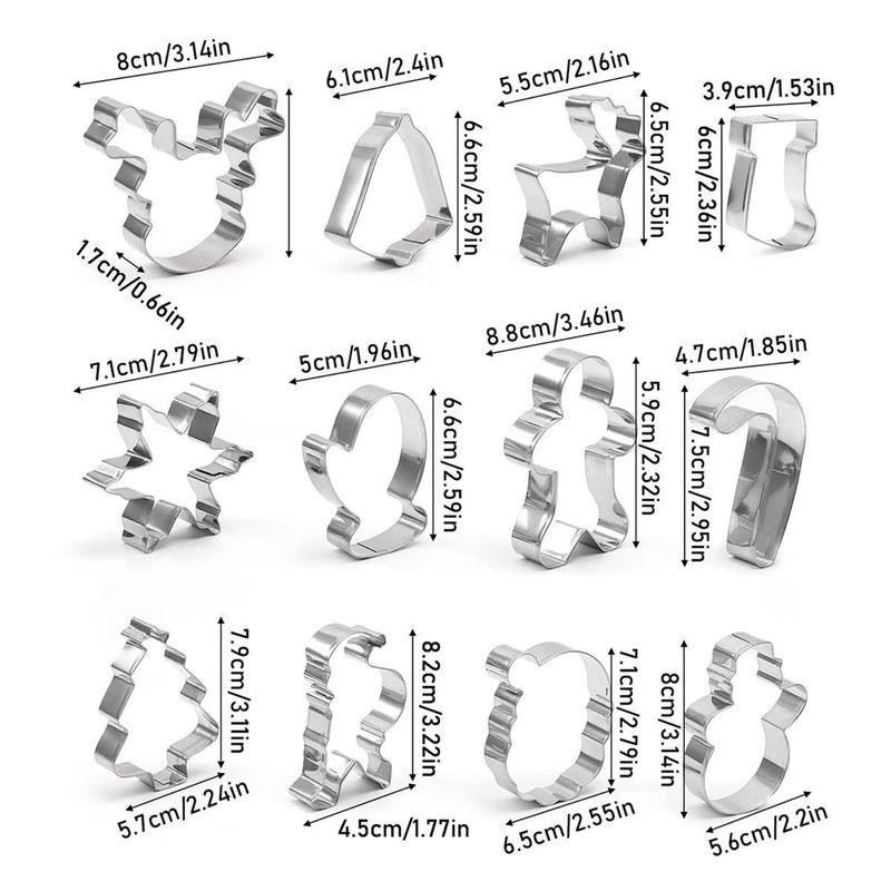 - 12 PIECE CHRISTMAS COOKIE CUTTER SET: This 12 piece winter cookie cutters set is perfect for making a variety of holiday themed cookies and treats. Have fun decorating Gingerbread Men,Christmas Tree,Snowflake, Candy Cane,Santa Face and Snow Man for Baking Decorative Party Supplies.