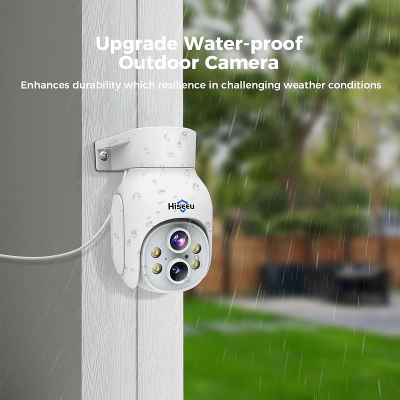 Hiseeu 3MP Dual Lens Security Camera Wireless WiFi 2.4GHz Outdoor, 10X Zoom Pan&Tilt 360°, Full Color Night Vision, Motion Detection, Siren/Motion/Light Alarm, IP66 Weatherproof, Work with Alexa