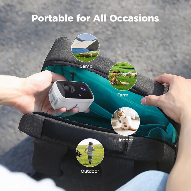 - 【100% Wireless & Waterproof & Portable】:Install this in home security camera at anywhere, no need power outlet. This small size IP camera can withstand various weather conditions by IP66 waterproof and durable materials while remaining inconspicuous. Multiple connection methods of this outdoor camera wireless, more stable: by home wifi 2.4GHz, wireless, hotspot, suitable for all occasions. Easy use by mobile app. Embrace the poetic moments and distant places, knowing that you are protected.