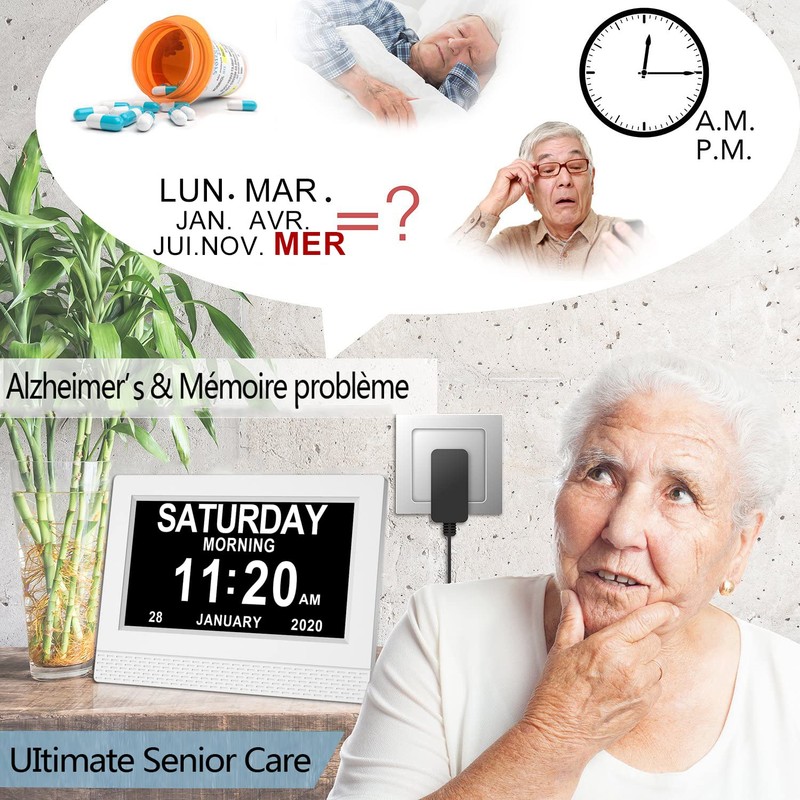 - Features: It is possible to add different alarm clocks to remember taking your medication, but also alarm clocks for daily activities. Comfortable for the elderly. Possibility to add a USB stick to turn this clock into a photo frame, a useful detail in some cases that allows the person to remember the faces of family or friends.