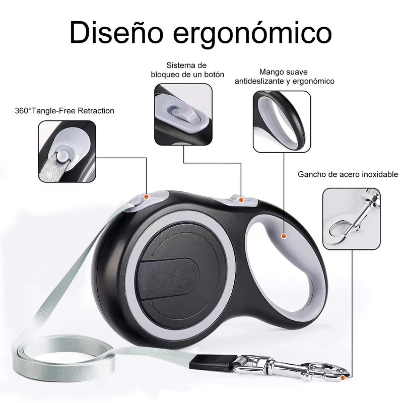 - 【Antienredos de 360°】 cinta de nailon duradera antienredos de 360° mejorada y gancho giratorio antioxidante. Robusto resorte helicoidal interno que se expande y contrae continuamente. Una de las mejores correas retráctiles para perros, una correa para perros de tamaño mediano y una correa resistente para caminar, trotar o caminar, ¡perfecta para caminar!