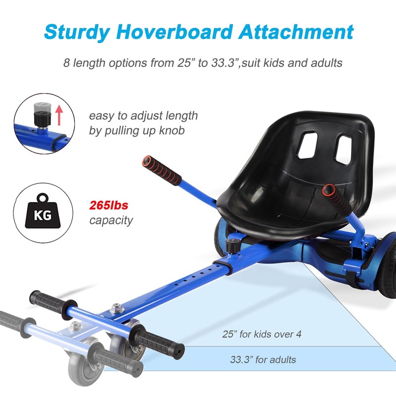 Hoverboard Seat Attachment 265lbs Capacity, 25"-33.3" Adjustable Length Hover Board Go Kart Accessory w/Comfortable&Sturdy Seat,Go Cart Compatible with 6.5” 8” 10” Hoverboard,Kids Adults