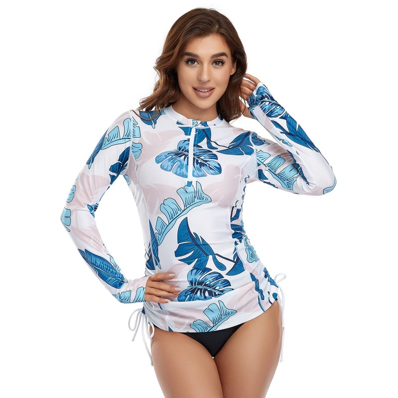 - ★Feature-The UPF 50+ sun protection layer will block out the UV radiation and protect your skin whether you are in or out of the water.Long sleeve design gives you more skin protection and protects you from sunburn.The thumb hole and drawstring design to allow a better fit and outline the perfect feminine curve and add feminine charm.