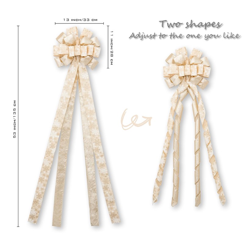 - 【PERFECT DESIGN】This Christmas tree topper is made of streamers with different materials and pattern. It has a flexible wire in the back. You can easily wrap your bow around the Christmas tree make it stable, face the light and shine. Reusable, suitable for many festivals: Christmas, Thanksgiving, wedding, etc.
