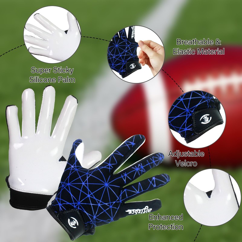 - Superior Grip Technology: Our youth football gloves feature an ultra-sticky silicone palm that ensures a firm hold on the ball, even in wet conditions