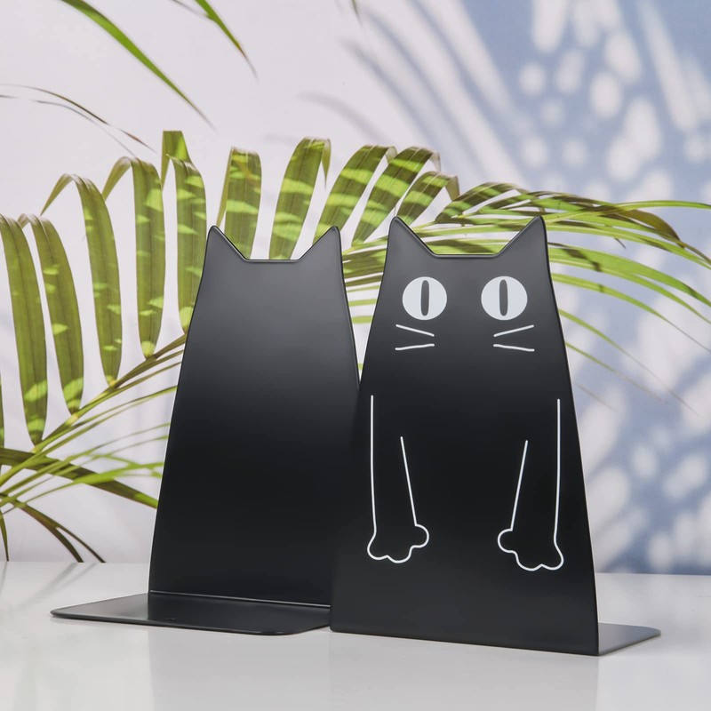 Hisredsun Cute Cat Metal Bookends, Large Sturdy Bookends Desktop Book Holder Organizer Bookends for Shelf