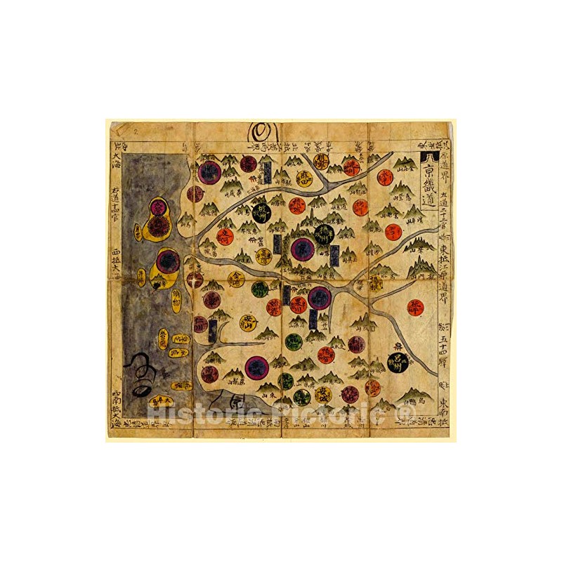 Historic 1800 Wall Map - Korean Manuscript World Map (Chonha-Do) - Map 2 16in x 16in