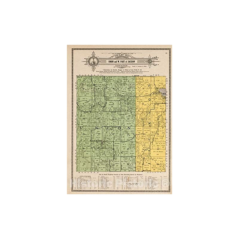 Historic 1914 Wall Map - Atlas and plat Book of Poweshiek County, Iowa - Union and West Part of Jackson - Standard Atlas and Directory of Poweshiek County, Iowa 16in x 24in