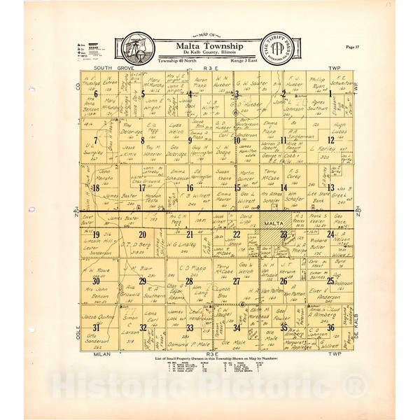 Historic 1929 Wall Map - Atlas and plat Book of De Kalb County, Illinois - Map of Malta Township De Kalb County, Illinois 16in x 18in
