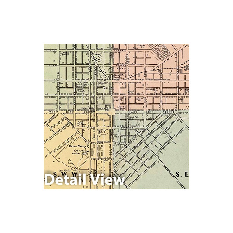 Historic Map : 1864 City of Lancaster, Pennsylvania. - Vintage Wall Art - 36in x 36in