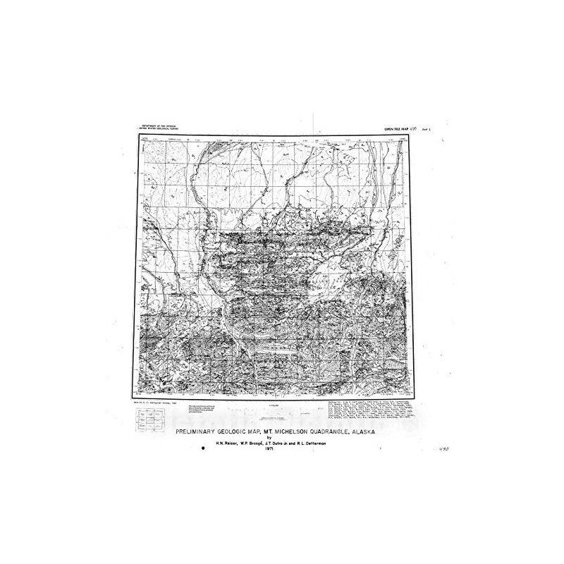 Historic Pictoric Map : Preliminary geologic map, Mt. Michelson Quadrangle, Alaska, 1971 Cartography Wall Art : 24in x 24in