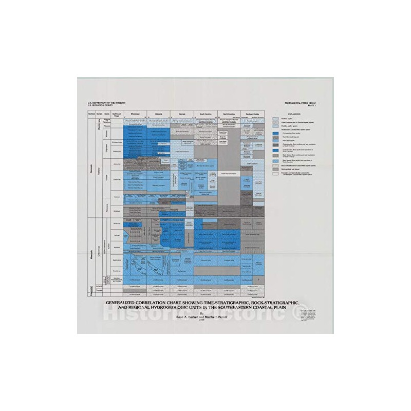 Historic Pictoric Map : Regional Hydrology and Simulation of deep Ground-Water Flow in The Southeastern Coastal Plain Aquifer System in Mississippi, Alaba, 1994 Cartography Wall Art : 16in x 16in