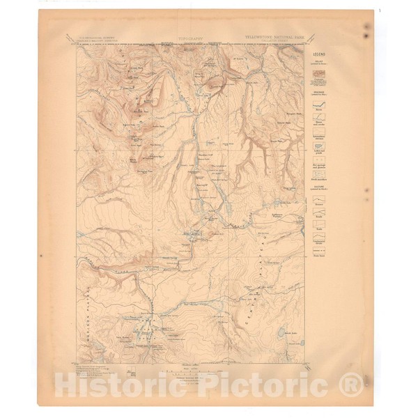 Historic Pictoric Map : Yellowstone National Park Folio, Wyoming, 1896 Cartography Wall Art : 20in x 24in