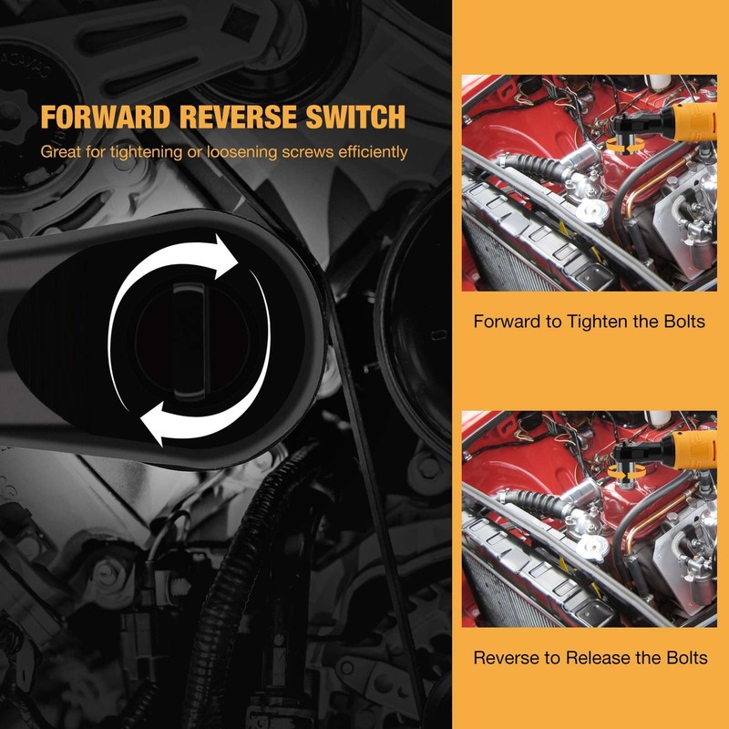 - 【More Convenient】: Features a dual directional adjustment, allowing for easy working in tight spaces. Electric ratchet is so good in cramped places where the manual ratchet does not have enough space