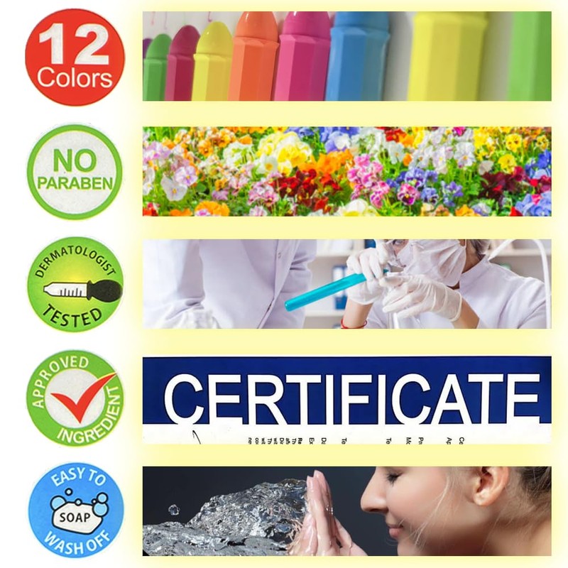 - Easy to use: the coloured pencil is very easy to apply to the skin. Twist to shrink, freely adjust the length of the crayon, easy to open and close, very suitable for children, beginners or adults.