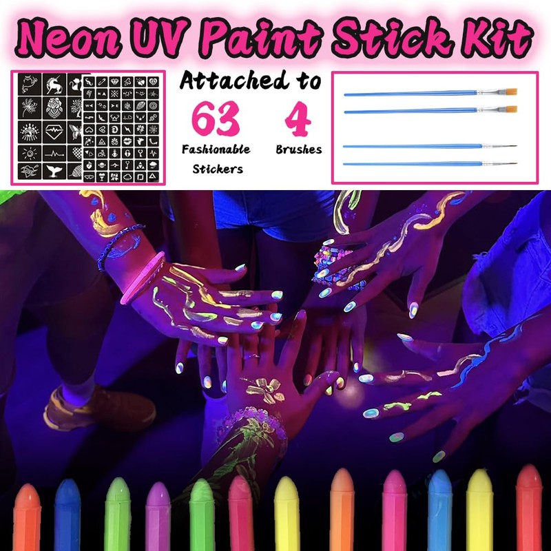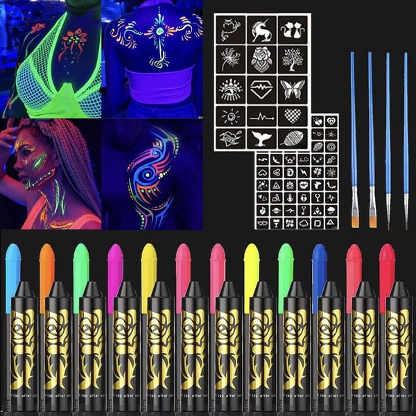 Hisunben UV Body Painting, 12 Colours, Neon UV Children's Make-Up Set, Washable Make-Up Pens, Face Paint Make-Up Set, Children's Body Colour (12 Colours)