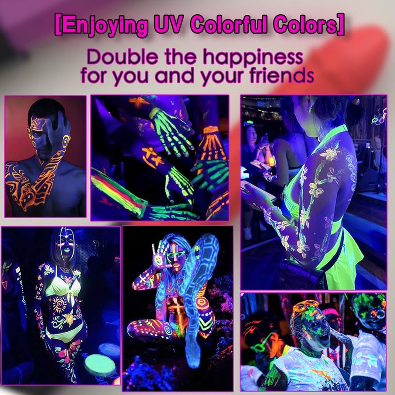 - Amazing fluorescent effect: After applying different colours to your face, it glows brightly under exposure to ultraviolet rays. It is an event of unparalleled beauty and fun, the highlight of your party look!