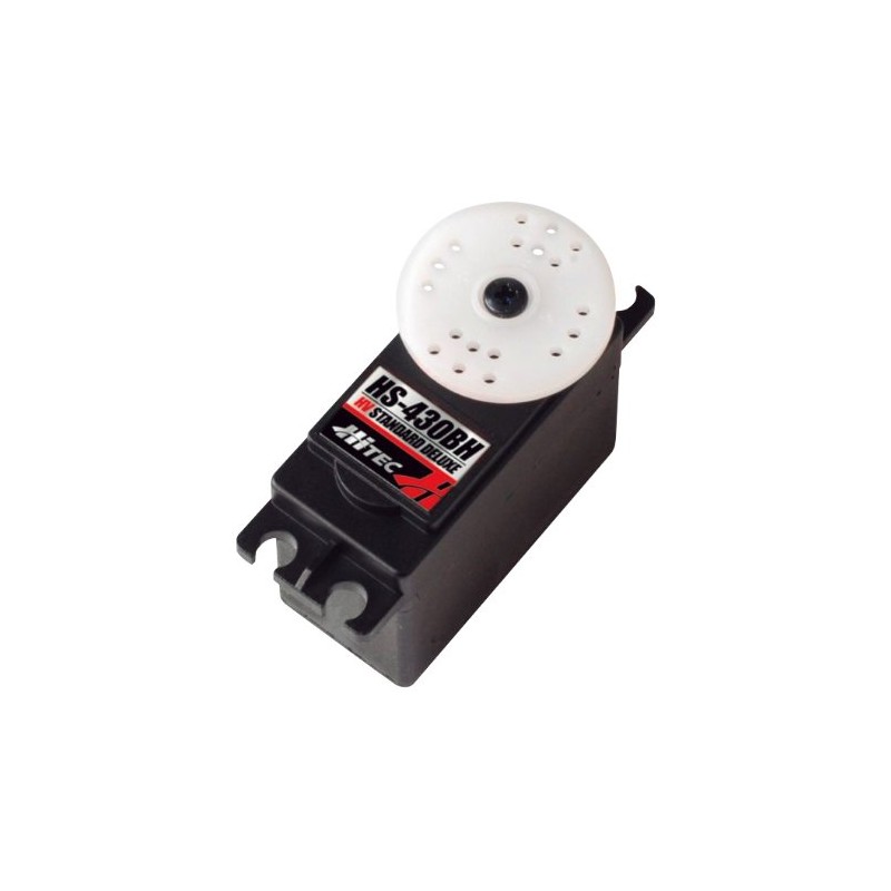 Based on the popular HS-425BB, our deluxe ball bearing HS-430BH is our budget- minded analog servo capable of 6.0 to 7.4 volt operation. Designed with the novice hobbyist in mind, this low cost servo can be used for control surfaces on beginner airplanes and as a throttle or replacement servo for many ready- to-fly models. Its excellent durability and dependability make it a solid choice for beginner pilots. Specifications Motor Type: 3 Pole Ferrite Bearing Type: Top Ball Speed (6.0V/7.4V): 0.16/0.14 Torque oz./in. (6.0V/7.4V): 57 oz.-in/69 oz.-in Torque kg./cm. (6.0V/7.4V): 4.1 kg-cm/5.0 kg-cm Size in Inches: 1.59x0.77x1.44 Size in Millimeters: 40.6x19.8x36.6 Weight oz.: 1.60 Weight g.: 45.5.